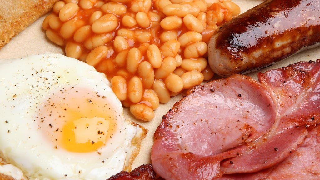 Englantilaistyyppinen aamiainen saattaa auttaa painonpudotuksessa, paljastaa tuore tutkimus. Tutkimuksen mukaan runsaasti proteiineja sisältävä aamupala pitää nälän poissa paremmin kuin hiilihydraatteja ja kuituja sisältävä aamiainen. Runsasproteiininen ateria aamulla myös estää ahmimista myöhemmin päivällä.