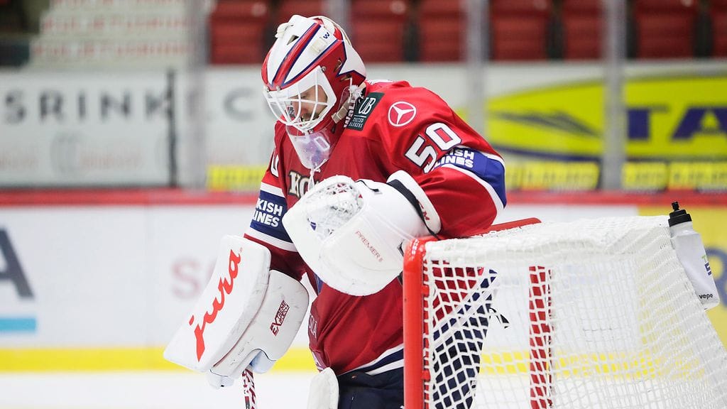 HIFK:n maalivahti Frans Tuohimaa venyi upeaan torjuntaan Kärppiä vastaan pelatun ottelun toisessa erässä.