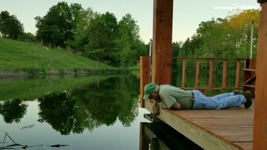 Yläpuolelta löytyvältä videolta on nähtävissä, kuinka Robert virittäytyy kalastusasentoonsa ja vetää vedestä ylös jättimäisen ahvenen.
