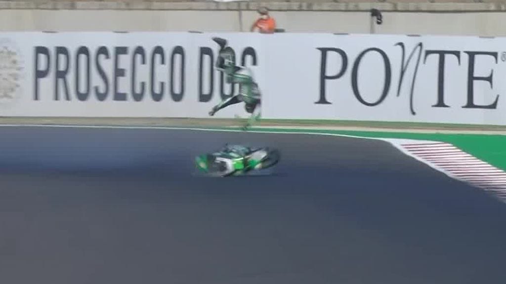 Ratamoottoripyöräilyn MM-sarjan Moto2-luokan San Marinon osakilpailun paalupaikalta starttaamaan valmistautunut aussikuski Remy Gardner menetti pelin rajussa kaatumisessa sunnuntain aamun harjoituksissa.