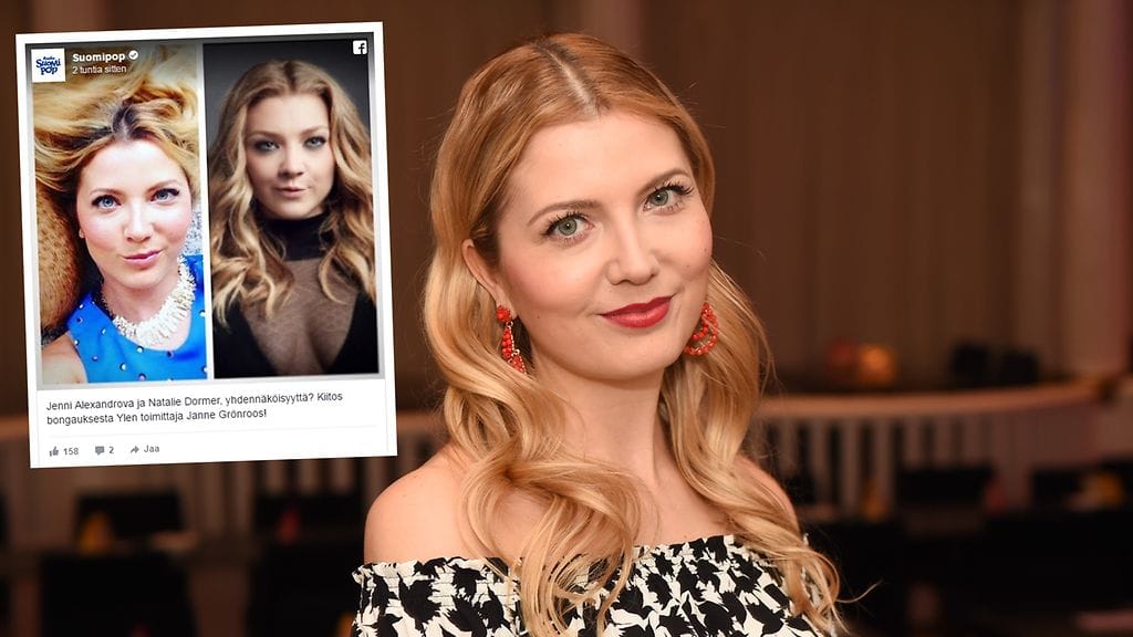 Juontaja Jenni Alexandrovassa ja näyttelijä Natalie Dormerissa on hämmästyttävän paljon samaa näköä.