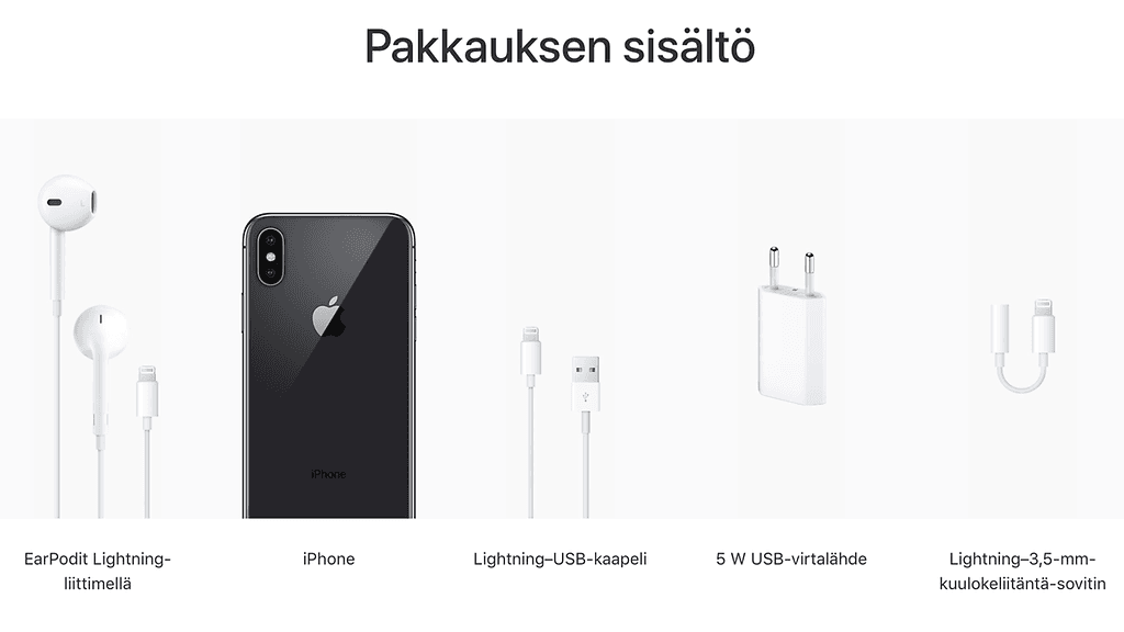 Esimerkiksi iPhone X:n hinta 64 gigatavun tallennusmuistilla on 1 179 euroa ja 256 gigatavulla 1 349 euroa. Jos hankkii lisäksi Applelta pikalataukseen tarvittavan virtalähteen ja kaapelin, nouseekin yhteishinta kalleimmassa mallissa jo 1 437 euroon.