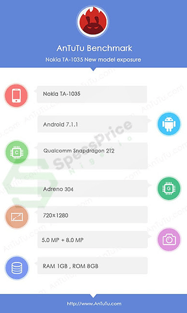 Nokia 2:ssa odotetaan olevan nyt AnTuTu-paljastuksen myötä seuraavat tekniset ominaisuudet: