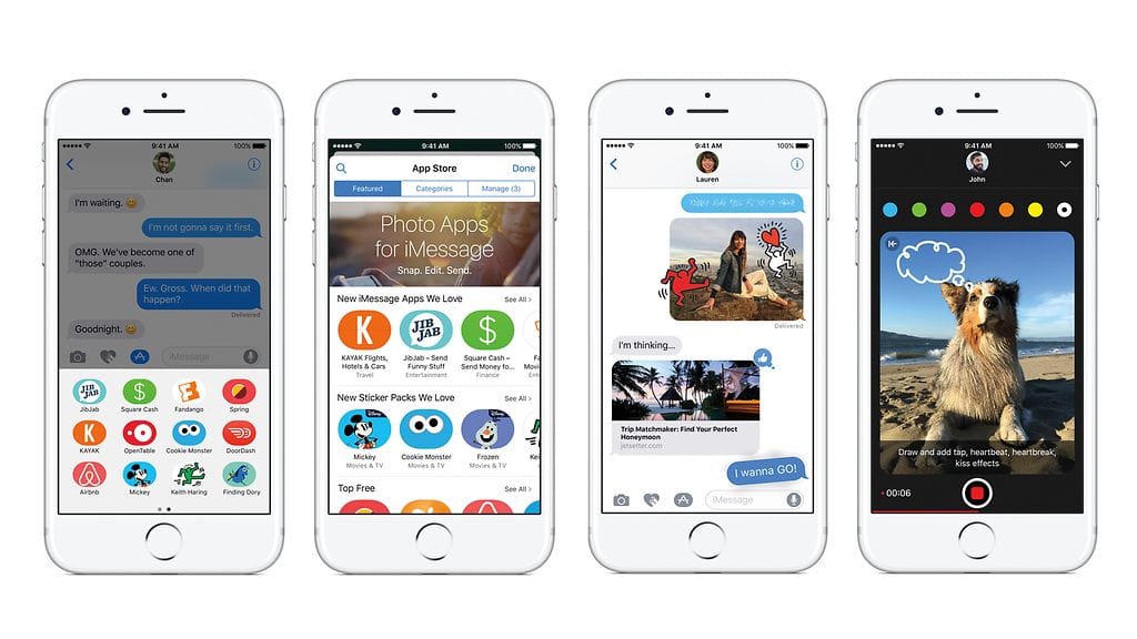 Uudessa käyttöjärjestelmässä voit lähettää GIF-animaatioita, esikatsella internetlinkkejä, merkitä kuvia ja videoita, piirtää animoituja viestejä ja lähettää käsinkirjoitettuja viestejä.