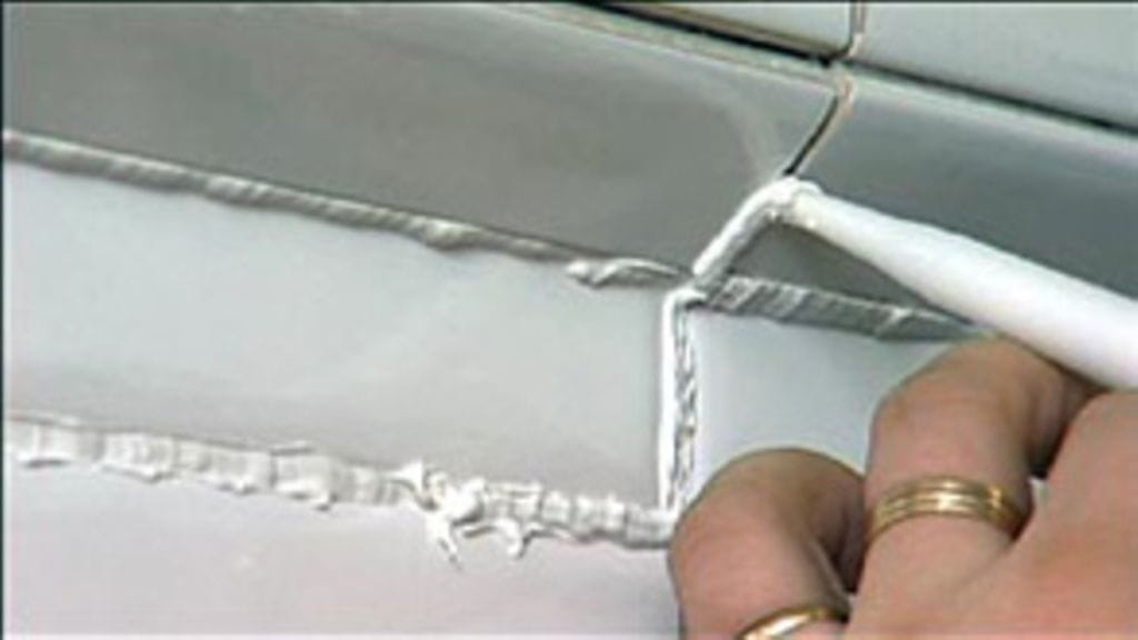 Aineen poistamisen jälkeen raot puhdistetaan rievulla. Parhaiten lian ja rasvan irrottaa asetoni. Käytä suojakäsineitä!