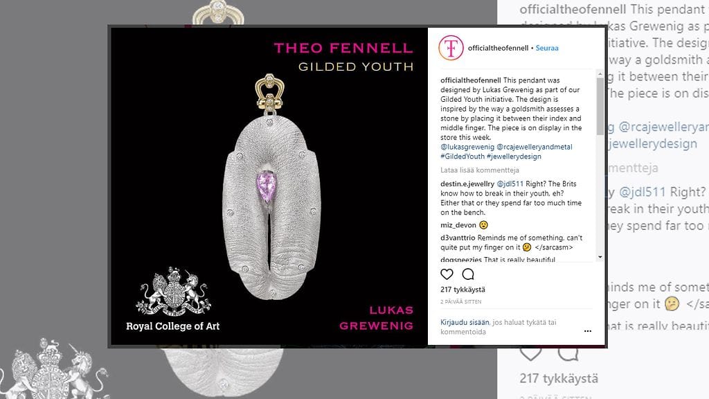 Jalokiviliike Theo Fennell julkaisi Instagramissa otoksen korusta, joka toi kuitenkin useimmille kommentoijille mieleen sormien sijaan jotakin aivan muuta, kertoo Huffington Post.
