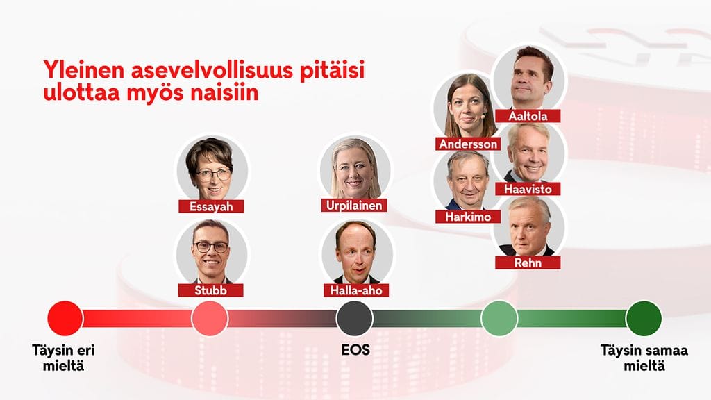 Presidenttiehdokkaista ainoastaan Alexander Stubb (kok.) ja Jussi Halla-aho (ps.) ovat jokseenkin samaa mieltä ydinaseiden tuomisesta Suomen maaperälle. Muut vastustavat.