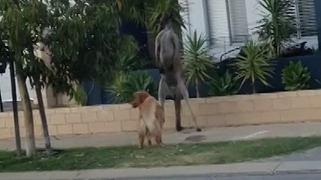 Golden Bayssa Länsi-Australiassa sijaitseva naapurusto sai pidättää hengitystään, kun kultainennoutaja Barnie herätti kaikki kiivaalla haukullaan. Koira oli karannut pihaltaan haastamaan naapurustossa liikkunutta isokokoista kengurua.