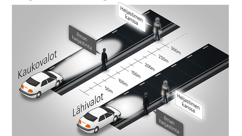Heijastinta on yhtä tärkeä pitää sekä hämärissä taajamissa, haja-asutusalueilla että valaistussa kaupunkiympäristössä.