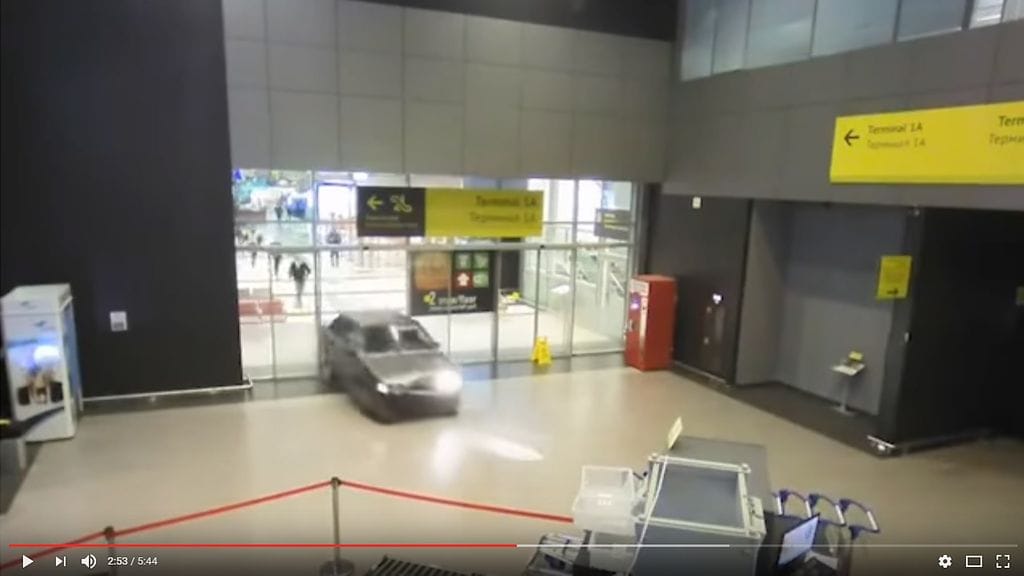 Videolla nähdään kovavauhtisen takaa-ajon mielipuolinen käänne, kun huumepäissään poliisia paennut kuljettaja onnistuu ajamaan Lada Samaransa lentokentän terminaaliin.