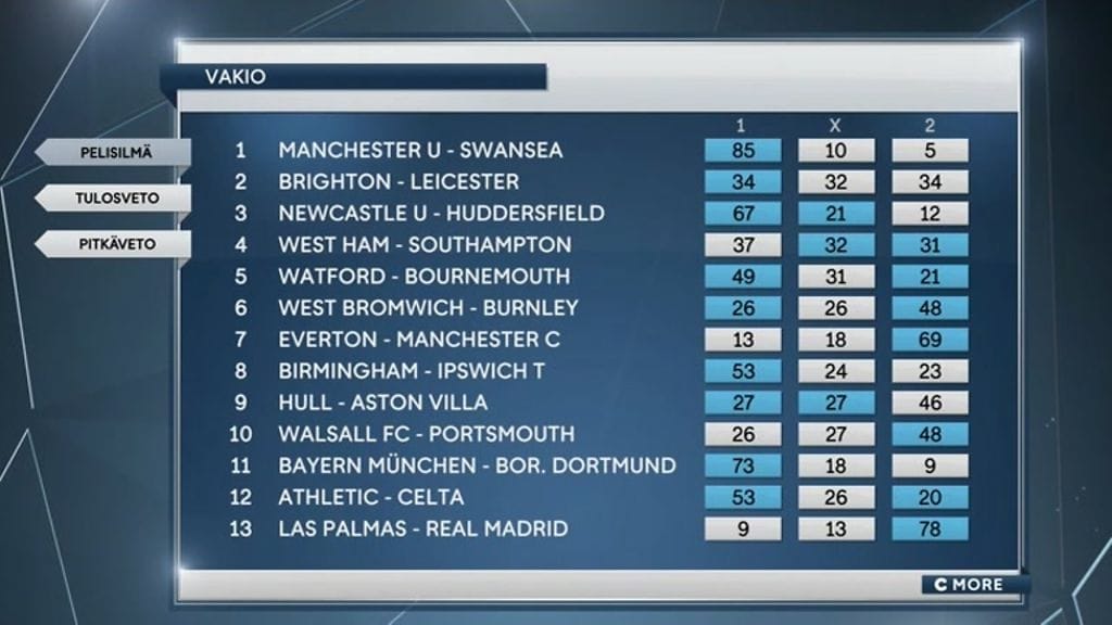 Vakiossa ei tällä kertaa ole tarjolla pelkästään brittifutista, sillä Valioliigan lisäksi kohteissa on kohteita Saksan Bundesliigasta sekä Espanjan LaLigasta.