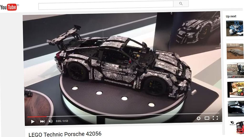 Porsche 911 GT3 RS -mallia jäljittelevä leluauto nähtiin naamioituneena lelunäyttelyssä Saksassa, jossa esiteltiin Legon tulevaa mallistoa.