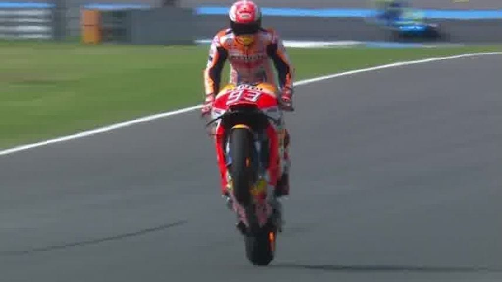 Edelleen MM-sarjan kakkossijasta taisteleva Valentino Rossi piti hetken aikaa tulosluettelon kärkipaikkaa itsellään, mutta Marquez täräytti loppuhetkillä italialaislegendan edelle vain 11 tuhannesosan erolla.