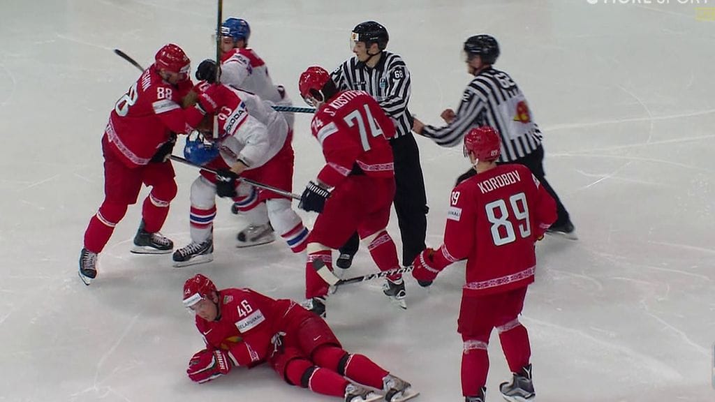 Tshekin pelaajia MM-kisojen A-lohkon ottelussa metsästänyt Valko-Venäjän Andrei Kostitsyn sai kokea rujon vastaiskun ottelun päätöserässä.