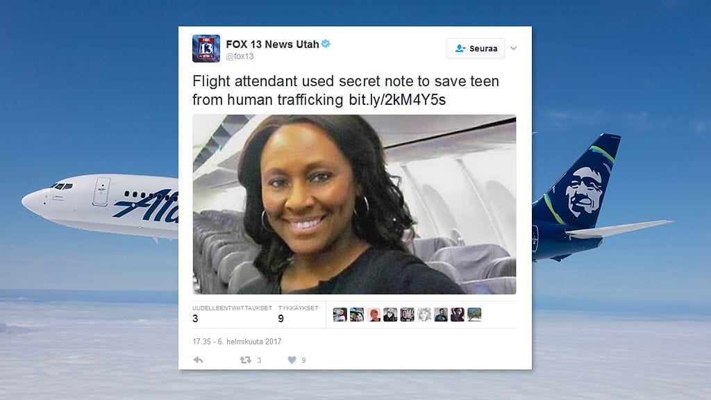 Lentoemäntiä eri puolilla maailmaa koulutetaan tunnistamaan mahdollisia ihmiskaupan uhreja. Yhdysvalloissa viranomaiset pidättivät viime vuonna lentokentillä kaksi tuhatta ihmistä ihmiskaupasta epäiltynä.