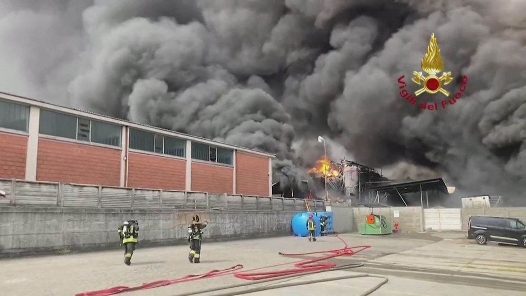Suuri kemikaalipalo syttyi tehdasalueella San Giulianossa lähellä Milanoa.