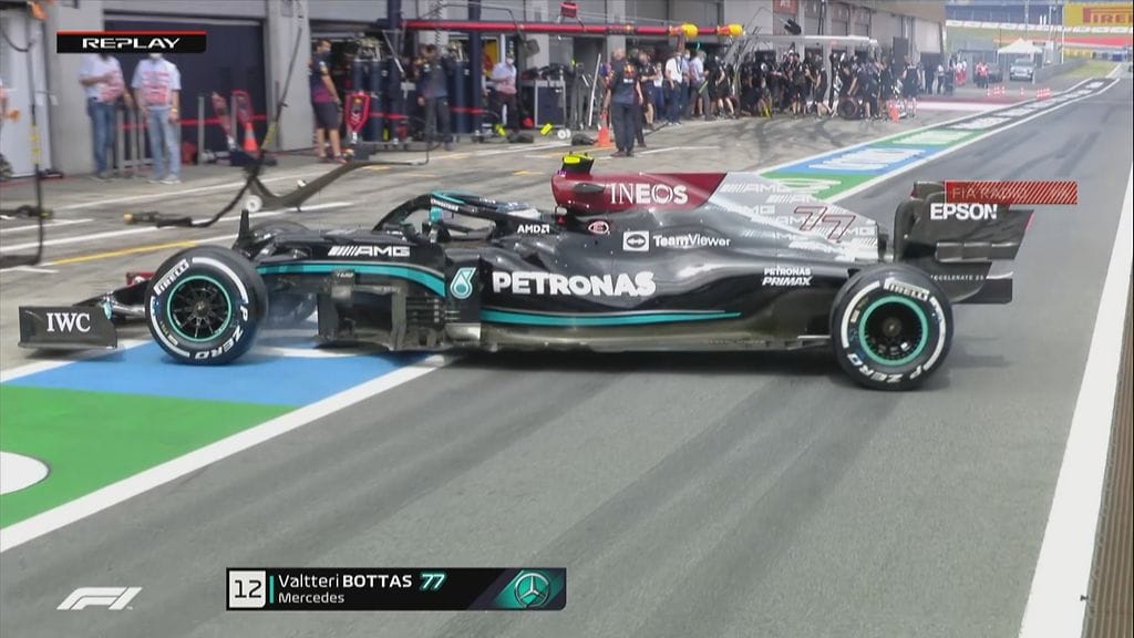 Valtteri Bottakselle sattui erikoinen kömmähdys Itävallan Steiermarkin GP:n toisissa harjoituksissa, kun Mercedes-kuski pyörähti poikittain lähdettyään matkaan varikolta.