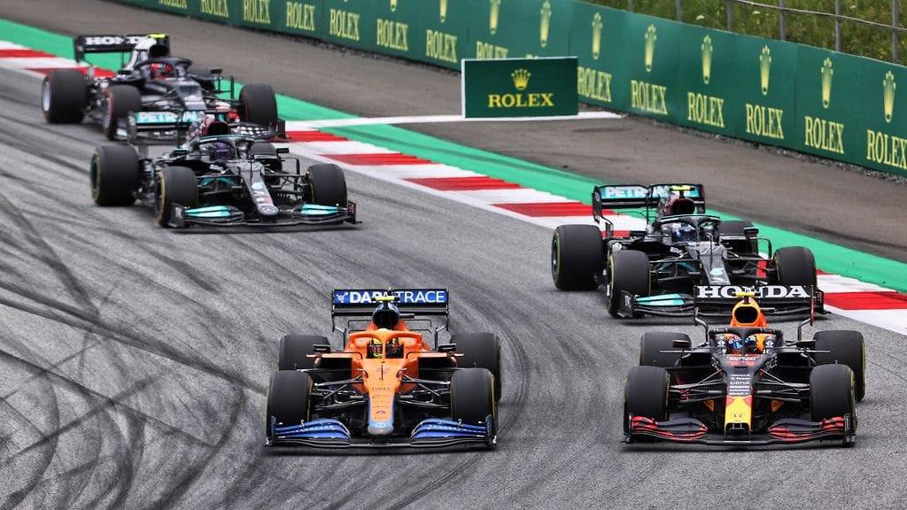 Uusintalähdössä toisena ollut McLarenin Lando Norris ja Red Bullin Sergio Perez kävivät kovaa vääntöä. Takana olleet Mercedes-kuskit Lewis Hamilton ja Valtteri Bottas olivat aivan tuntumassa.