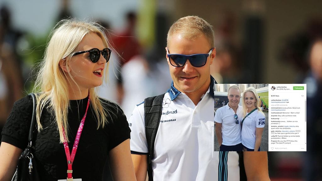 Bottas julkaisi omalla Instagram-tilillään kuvia, ja ainakin miehen ilmeestä päätellen kannustusmatka on myös hänelle mieluinen.