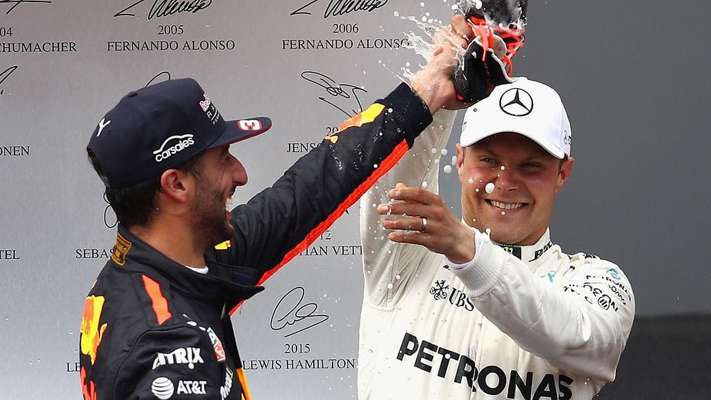 Bottas liukeni nopeasti paikalta, kun Riccardo kaivoi kenkänsä esiin jo juhannuksena ajetussa Azerbaidzhanin GP:ssä. Viikko sitten suomalaiskuski torjui australialaisen sukkalämpimän kuohujuoman uudelleen – tällä kertaa tarvittiin jo kevyttä väkivaltaa.