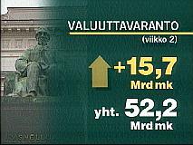 Suomen Pankki on kasvattanut valuuttavarantoaan poikkeuksellisen paljon. Keskuspankin valuttavaranto paisui tammikuun toisella viikolla lähes 16 miljardia markkaa.