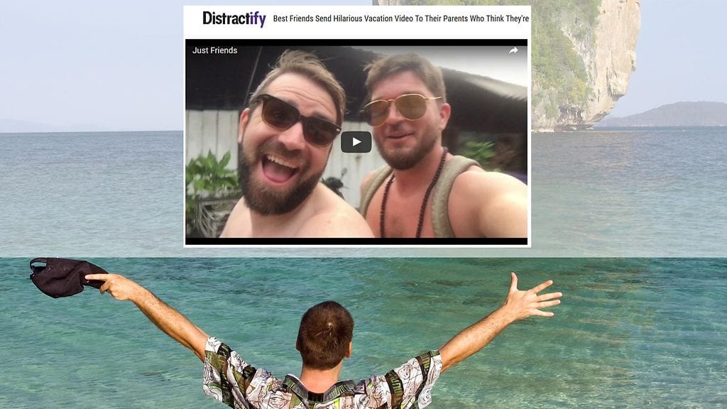 Humoristisella lomavideolla mieskaksikko käyttäytyy kuin pariskunta.