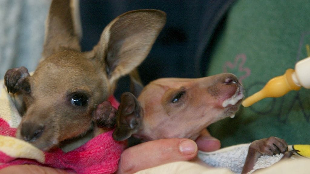 Ruoka-aika eläinten kuntoutuskeskuksessa Broomessa Länsi-Australiassa. Jan Martin valmistaa äidinmaidonvastiketta 14 pienelle asiakkaalleen.