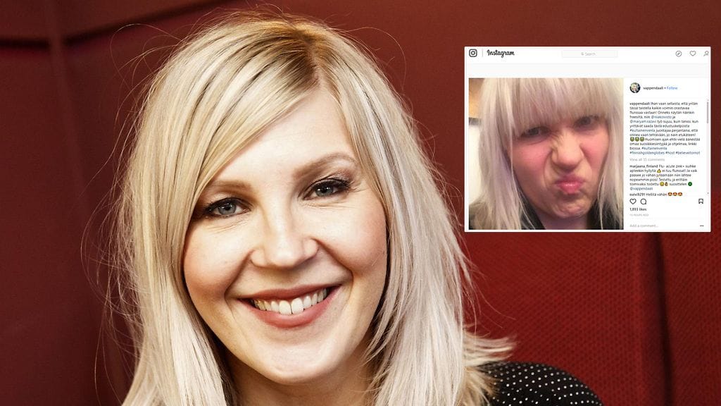 Juontaja Vappu Pimiä kertoo Instagram-päivityksessään pyrkivänsä paranemaan flunssasta ennen perjantain suoraa lähetystä.