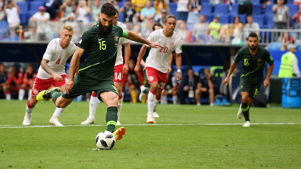 Aivan kuten Ranskaakin vastaan, Jedinak upotti VAR:n avulla tuomitun rangaistuspotkun varmasti maaliin ohi Tanskan maalivahdin Kasper Schmeichelin.