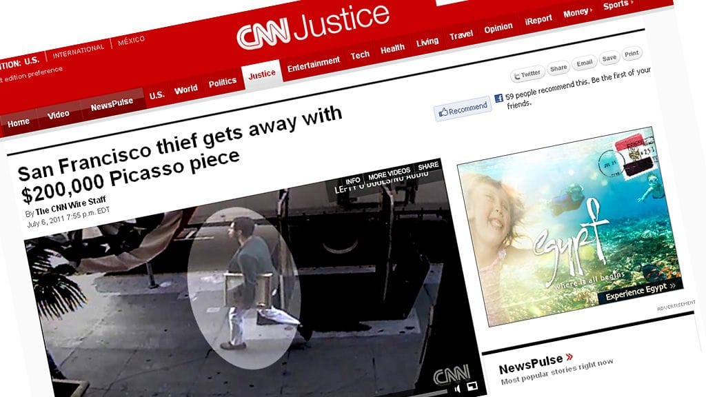 Toistaiseksi tunnistamaton tauluvaras käveli nimittäin tällä viikolla tyynesti ulos San Franciscossa sijaitsevasta galleriasta arvoteos kainalossaan.