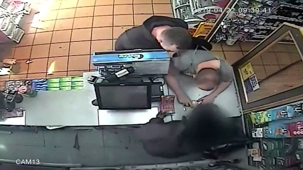 Lontoon poliisi julkaisi valvontakameratallenteen tilanteesta, kun miehet raaputtivat arvan kioskin tiskillä.