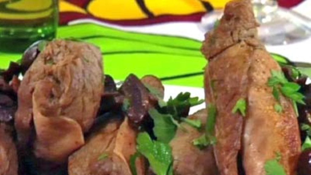 Nuiji vasikanleikkeet hyvin ohuiksi ja mausta ne suolalla ja pippurilla. Silppua puolet oliiveista ja halkaise loput. Hienonna valkosipuli ja lehtipersilja. Täytä leikkeet kinkulla, oliivisilpulla, valkosipulilla, lehtipersiljalla ja muskottipähkinällä. Kääri täytetyt leikkeet rullalle ja sido kääryleet puuvillalangalla.