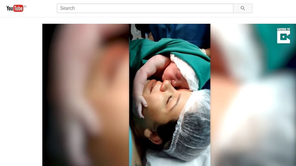 Vauvan ja äidin ensikohtaamisen tallentaneet lääkärit halusivat ikuistaa ikimuistoisen hetken äidille muistoksi.