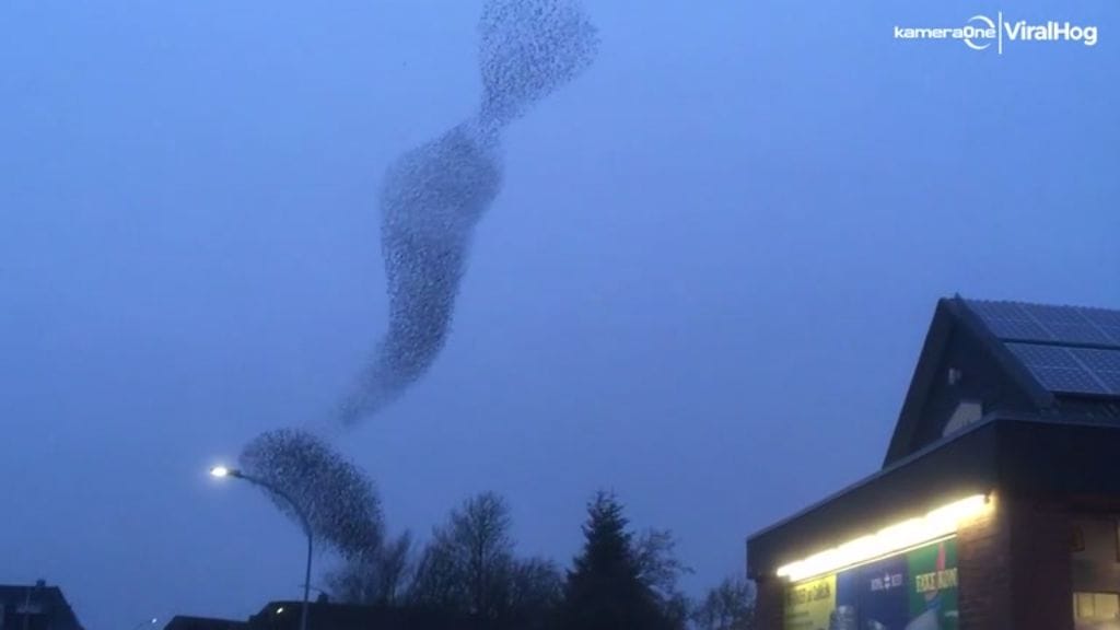 Mies pääsi tyttärensä kanssa todistamaan paraatipaikalta luonnon omaa taideperformanssia, josta vastasi jättimäinen lintuparvi.