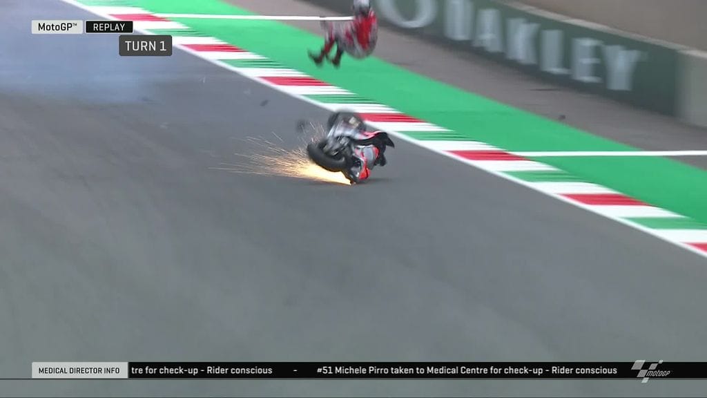 MotoGP:n testikuski Michele Pirro koki poikkeuksellisen rajun kaatumisen Italian GP:n harjoituksissa perjantaina.