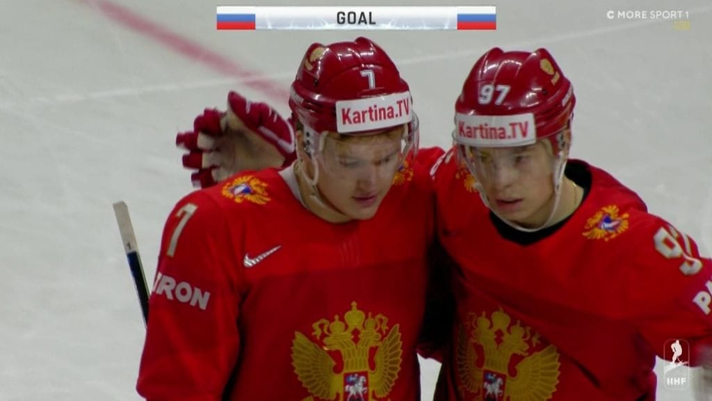 Ylivoiman aikana Venäjän Kirill Kaprizov iski ottelun avausmaalin. Upean syötön maaliin tarjoili Nikita Gusev.