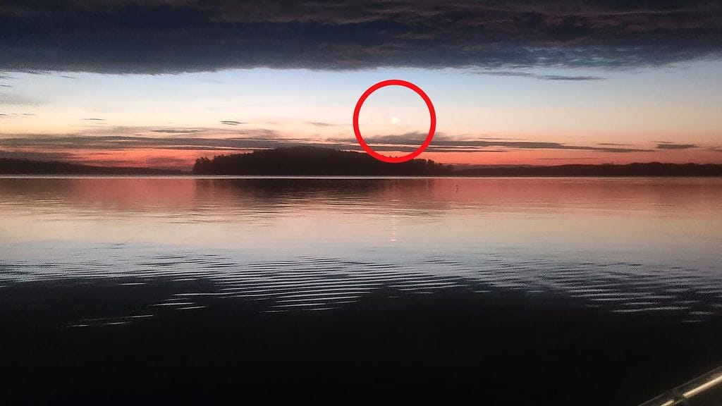 Mika Jormakka oli myöhään maanantai-iltana veneilemässä ja nostamassa rapumertoja kesämökillään Uukuniemellä Karjalan Pyhäjärvellä. Yhtäkkiä taivaankansi ikään kuin leimahti liekkeihin. Jormakka nappasi kuvan kännykällään kello 23.34.