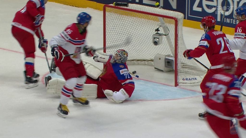 Tshekin puolustaja Tomas Kundratek heilutti maaliverkkoja MM-kisadebyytissään Venäjää vastaan.