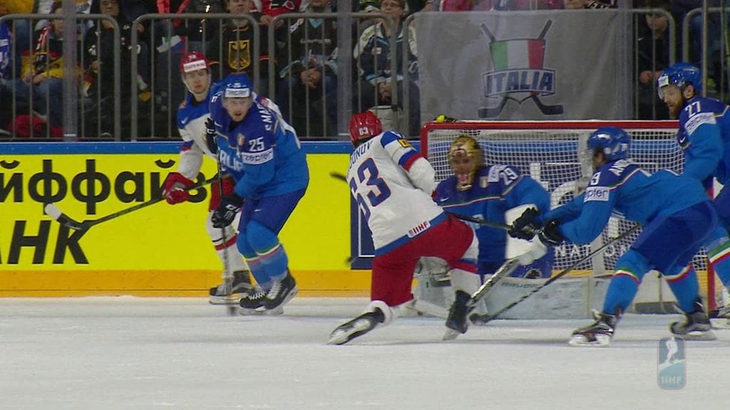 Venäjä pyöritti Italiaa pahasti jääkiekon MM-kisojen alkulohko-ottelun avauserässä Kölnissä. Venäjä johtaa 20 minuutin jälkeen 2-0.