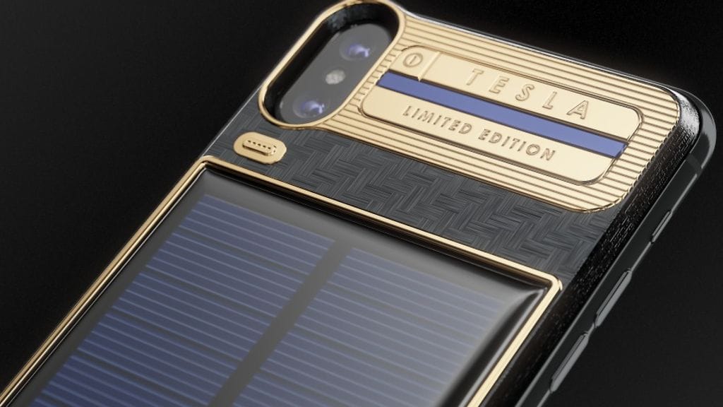 Caviar iPhone X Teslan takaosassa on aurinkopaneeli, joka tarjoaa laitteelle virtaa.
