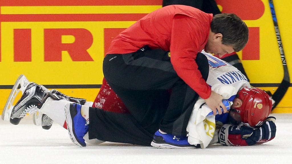 - Mozjakinilla epäiltiin olevan aivotärähdys, mutta asiasta ei ole saatu täyttä varmuutta. Keskiviikkona tehtävien tutkimusten jälkeen päätetään Mozjakinin jatkamisesta turnauksessa, Venäjän jääkiekkoliiton varapuheenjohtaja Roman Rotenberg kertoi uutistoimisto Tassille.