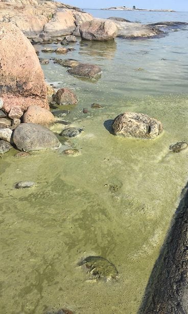 Saaristomerellä puolisonsa ja ystäväpariskunnan seurassa purjehtivan Matti Hautaslon mukaan vesi on tällä hetkellä niin leväistä, ettei uiminen ole käytännössä mahdollista.