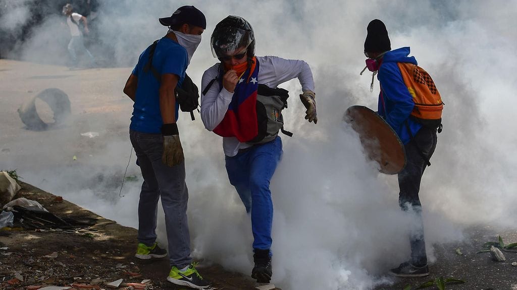 Mellakkapoliisi käytti kyynelkaasua karkottaakseen kiviä heittelevät mielenosoittajat pois pääkaupunki Caracasin keskustasta. Silminnäkijöiden mukaan mieltään osoittanut 19-vuotias mies haavoittui vakavasti päähän, kun kulkueen ohi ajoi joukko Maduron hallintoa tukevia asemiehiä moottoripyörillä.