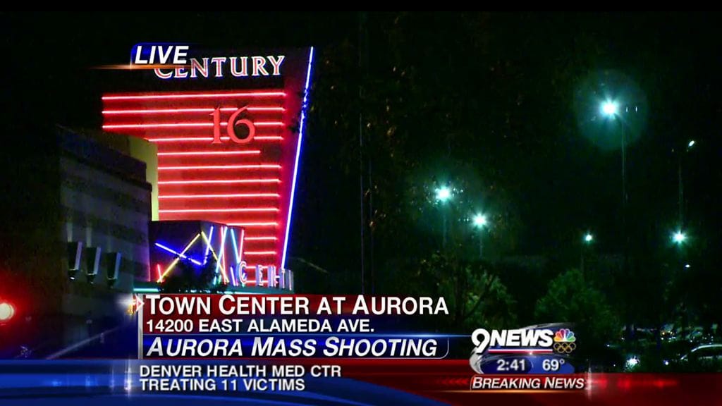KOA- ja 9News-asemien haastattelemien silminnäkijöiden mukaan hahmo kaasumaskissa ja mellakkavarustuksessa avasi tulen ostoskeskuksessa sijaitsevassa elokuvateatterissa.