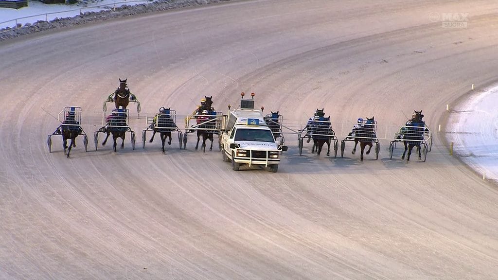 Lämminveristen Talvimalja-lähdössä mailin matkalla kirkkaimman sijan vei Kari Rosimon ohjastama Air Gunner. Se sai keulapaikan helposti alkukiihdytyksen jälkeen. Loppusuoralla Up Up And Away nousi sen rinnalle haastamaan, mutta Air Gunner sai juuri ja juuri pidettyä kärjen hallussaan. Voitto oli ruunalle toinen putkeen, edellisen ykkösensä se otti tammikuun lopussa Teivossa.
