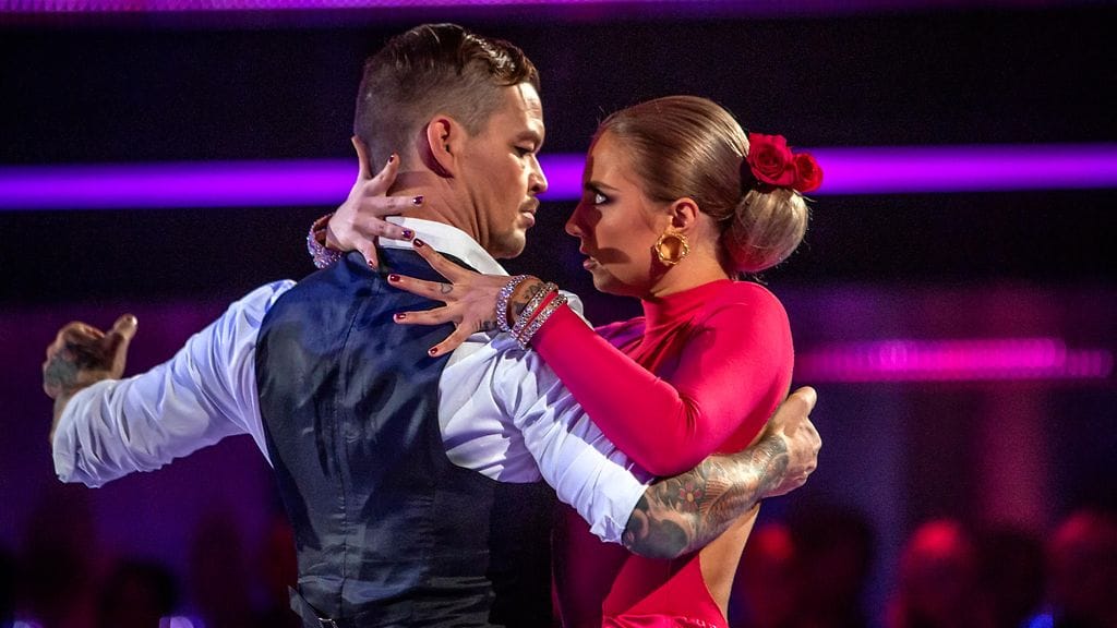 Mediapersoona Veronica Verho tanssi suorassa Tanssii Tähtien Kanssa -lähetyksessä parinsa kanssa veikeän quickstepin.