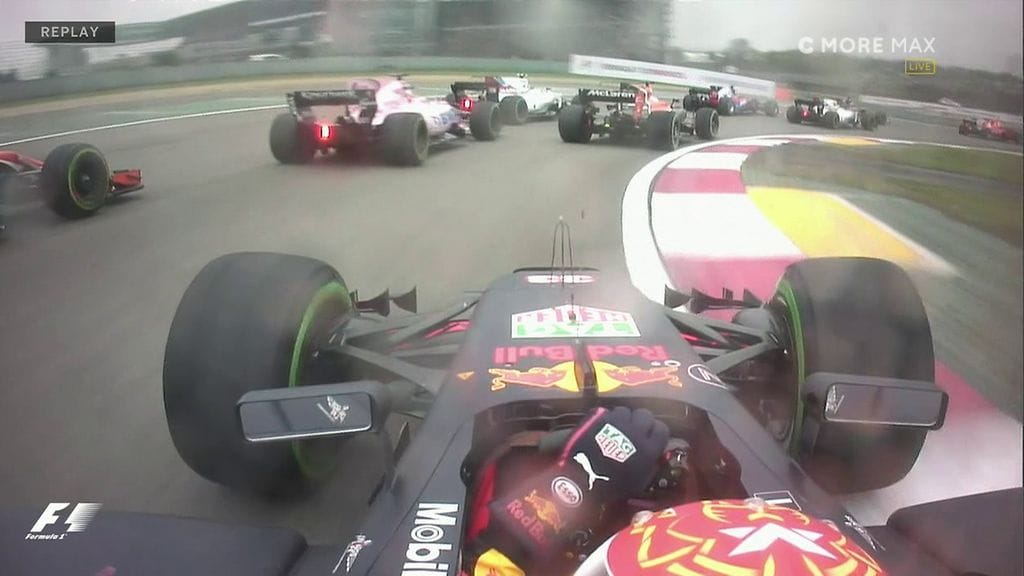 Kierrosta myöhemmin hän oli noussut kuin tyhjästä seitsemänneksi. Ensimmäisissä mutkissa taakse jäi heti kuusi autoa, minkä lisäksi Verstappen poimi vielä kolme päänahka edeltään ennen kuin turva-auto kokosi letkan yhteen.