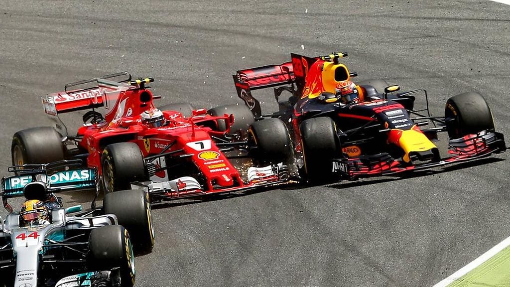 Räikkönen törmäsi Ferrarillaan Verstappeniin ykkösmutkassa, ja peli oli selvä molempien kuljettajien osalta. Ennen parivaljakon törmäystä Räikkönen oli ottanut osumaa Mercedeksen Valtteri Bottaksen kanssa.