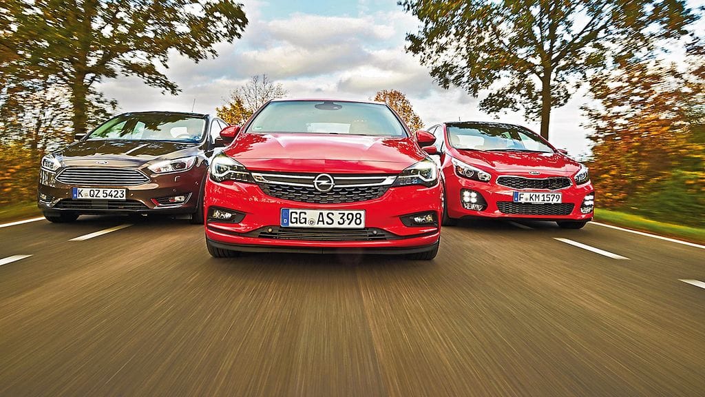 Vuoden Autoksi Suomessa juuri valittu Uusi Opel Astra ottaa ensi kertaa mittaa sen kilpailijoista, kun sitä vastaan asettuvat Ford Focus ja Kia Ceed. Kaikkien konepellin alta löytyy moderni kolmisylinterinen bensaturbo.