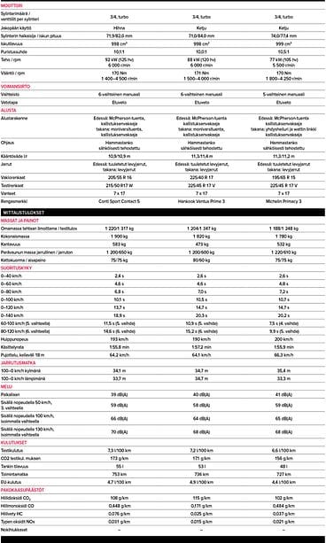 Opel uudistui hiljattain täysin, ja sen kolmipytty on vertailukolmikosta heikkotehoisin. Tällä ei tosin ole juuri merkitystä arjen suorituskykyyn. Polttoainemittarilla pysähdyttäessä ero kilpailijoihin on sen sijaan selvempi. Myös Astra vakuuttaa tiloillaan.